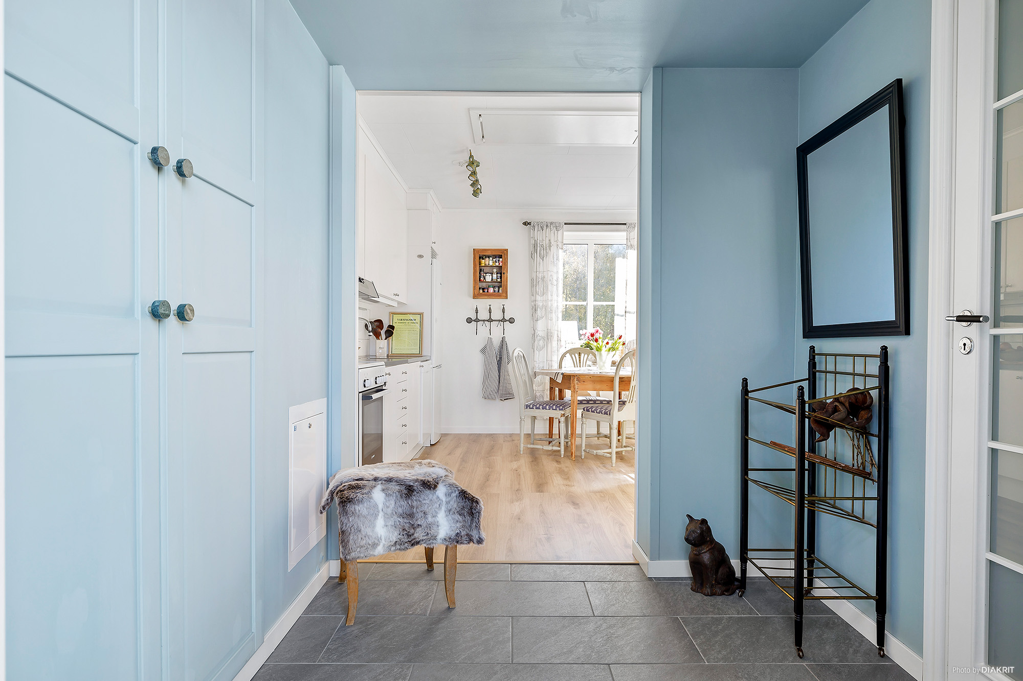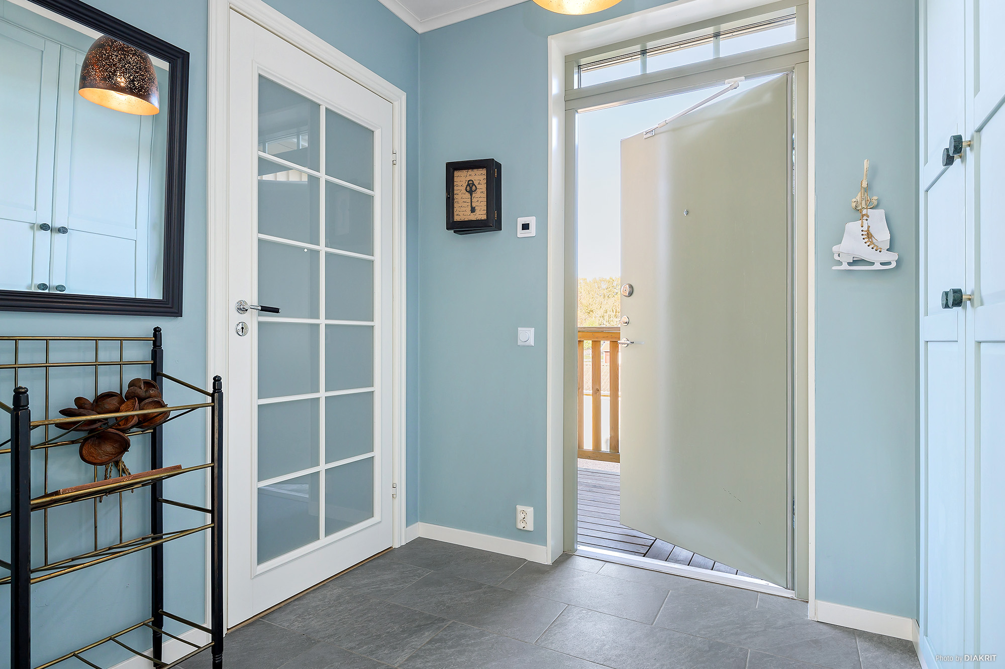 Inbjudande hall med målade väggar samt klinkergolv med golvvärme. Två inbyggda garderober.