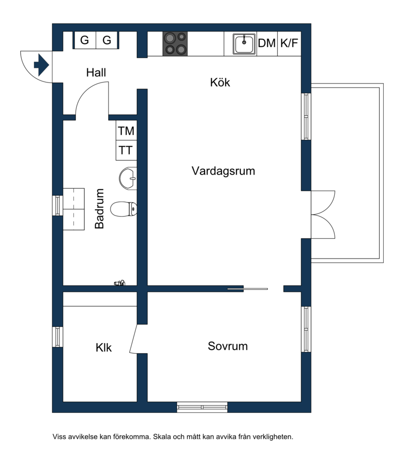 Uppgifter om lägenheten härrör huvudsakligen från säljaren och kontrolleras av fastighetsmäklaren endast om omständigheterna ger anledning till detta. Samtliga areauppgifter är baserade på säljarens information samt kontrollerad med föreningen. Dessa uppgifter kan av olika skäl vara felaktiga. Den köpare som anser arean vara av betydelse för köpet bör därför vidta en uppmätning.