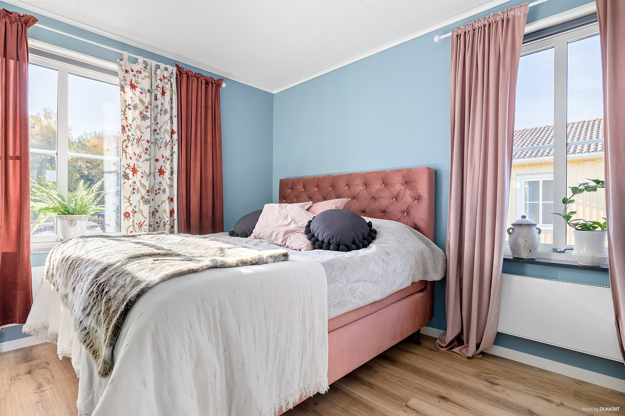 Rymligt sovrum med fönster i två väderstreck. Härlig färg på väggarna med nytt laminatgolv. I anslutning till sovrummet finns en rymlig klädkammare med fönster.