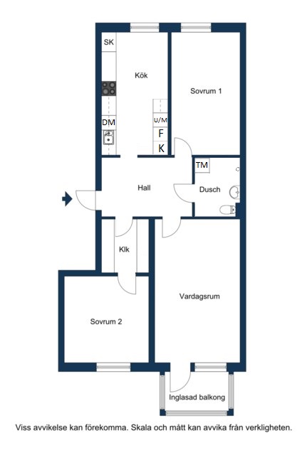 Uppgifter om lägenheten härrör huvudsakligen från säljaren och kontrolleras av fastighetsmäklaren endast om omständigheterna ger anledning till detta. Samtliga areauppgifter är baserade på säljarens information samt kontrollerad med föreningen. Dessa uppgifter kan av olika skäl vara felaktiga. Den köpare som anser arean vara av betydelse för köpet bör därför vidta en uppmätning.
