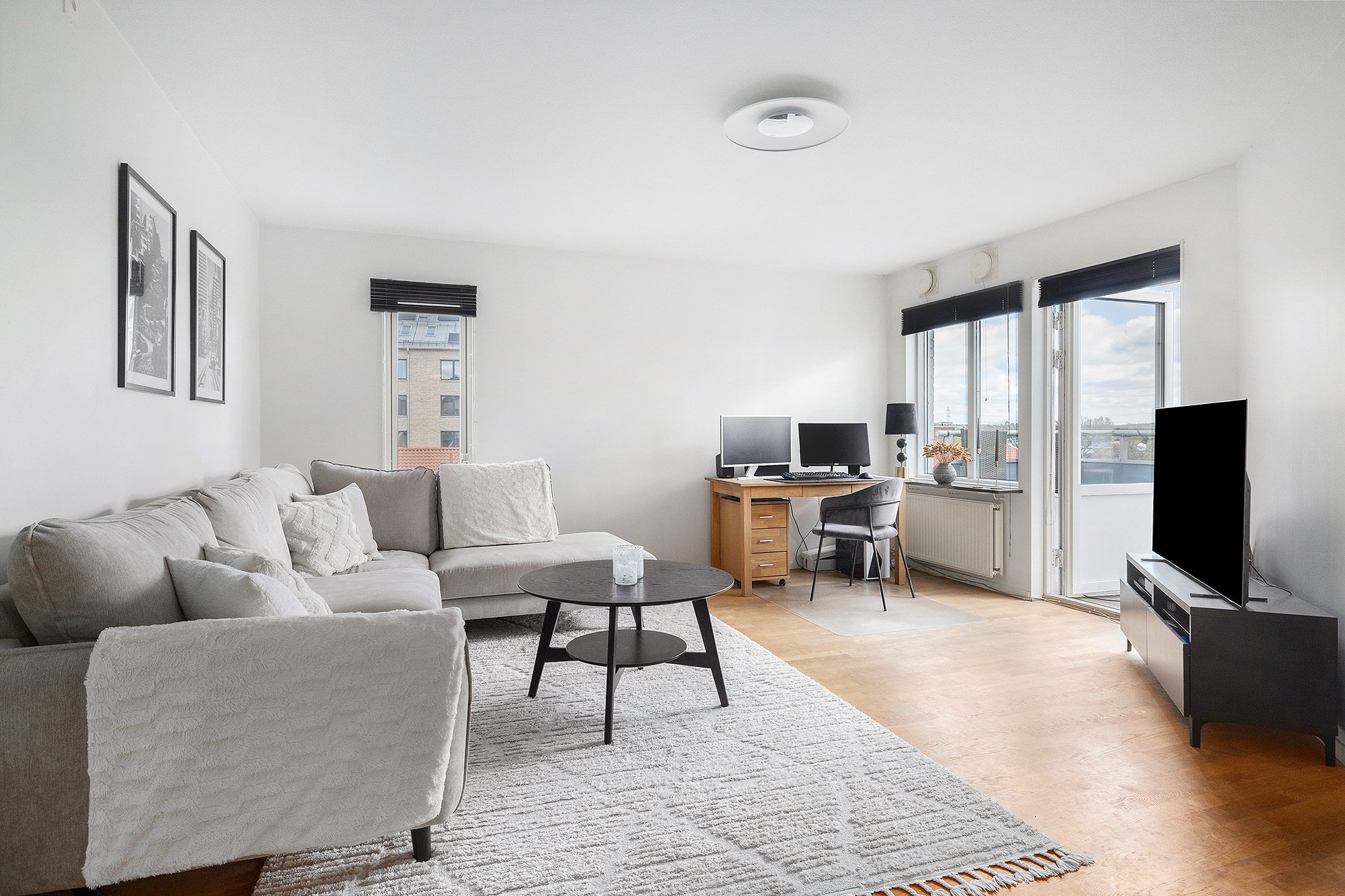 Bostadsrättsförening Södergatan omfattar 225 bostäder med varierande antal rum och storlekar på adresserna Södergatan 9-38. Bostäderna finns i fem- till sexvånings punkthus och länkhus med tre våningar, alla med hiss. Några bostäder har balkongterrass nära marken, andra har takterrass. Flera bostäder har två balkonger. Det finns tolv etagelägenheter i två våningar. Föreningen har även 14 st lokaler som hyrs ut till olika verksamheter och företag.