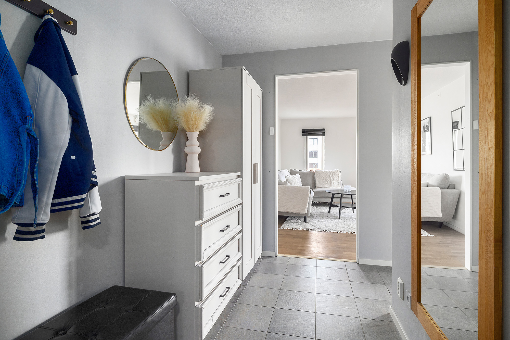 Cykel- och barnvagnsrum finns i entréplanen i portarna 11A, 16B, 17A, 28, 30 och 38.