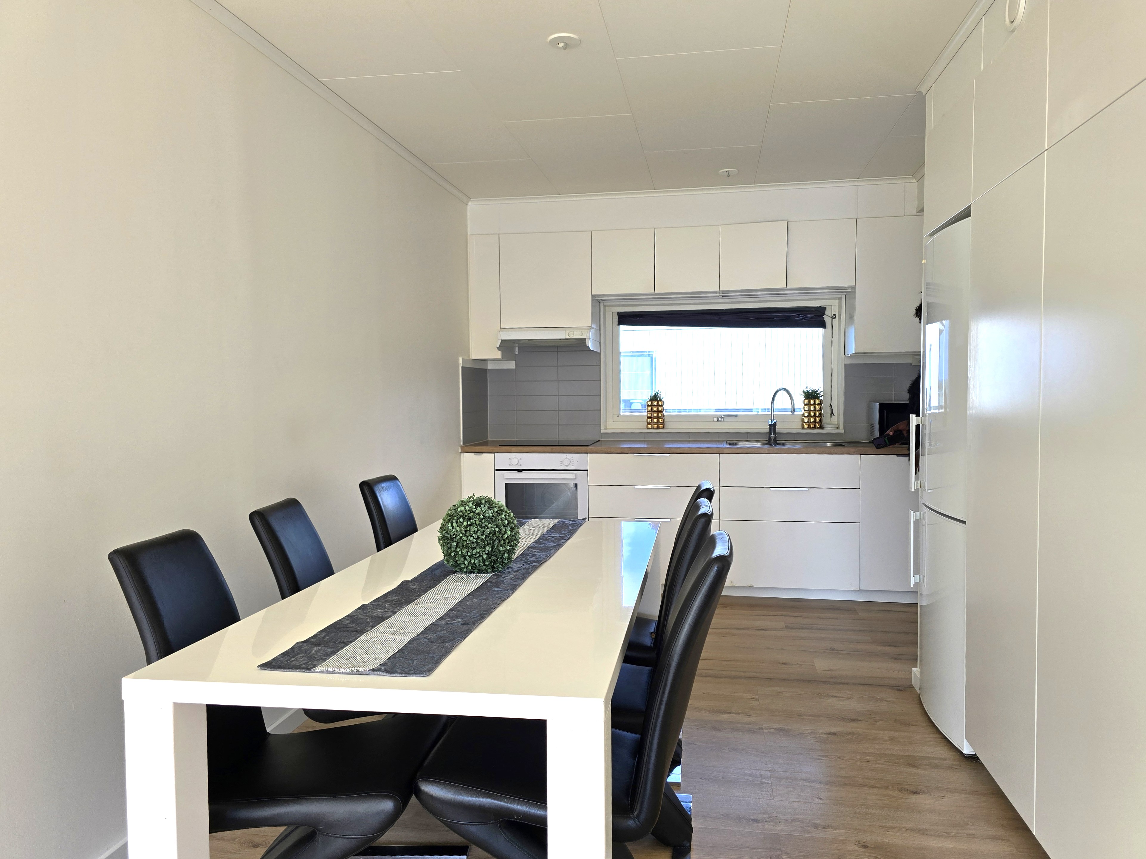 Lägenhetsfördelning: 24 st 2 rum och kök, 12 st 3 rum och kök, 10 st 4 rum och kök. Den totala boarean är 3034 kvm.